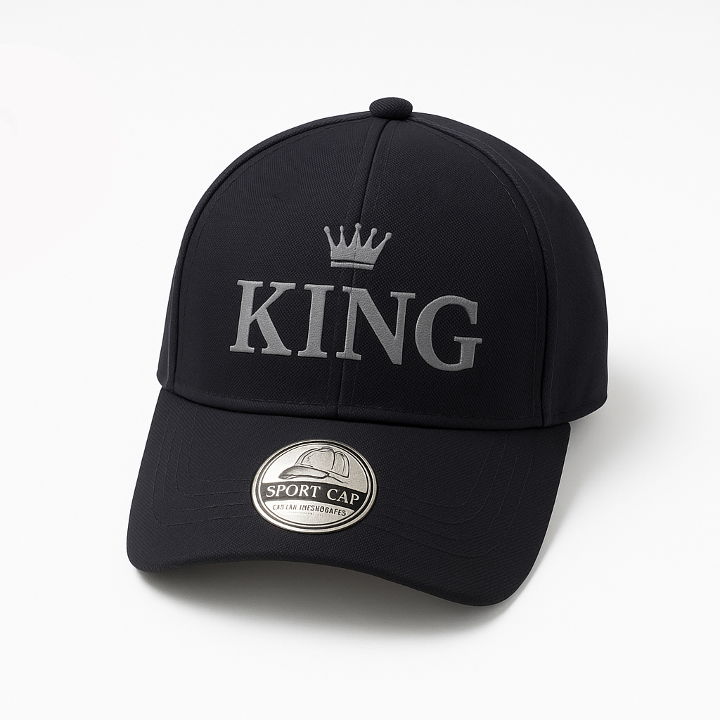 Rule your style game with the Phirsein Black “KING” Printed Sports Cap, specially made for Men and Women who carry confidence like royalty.