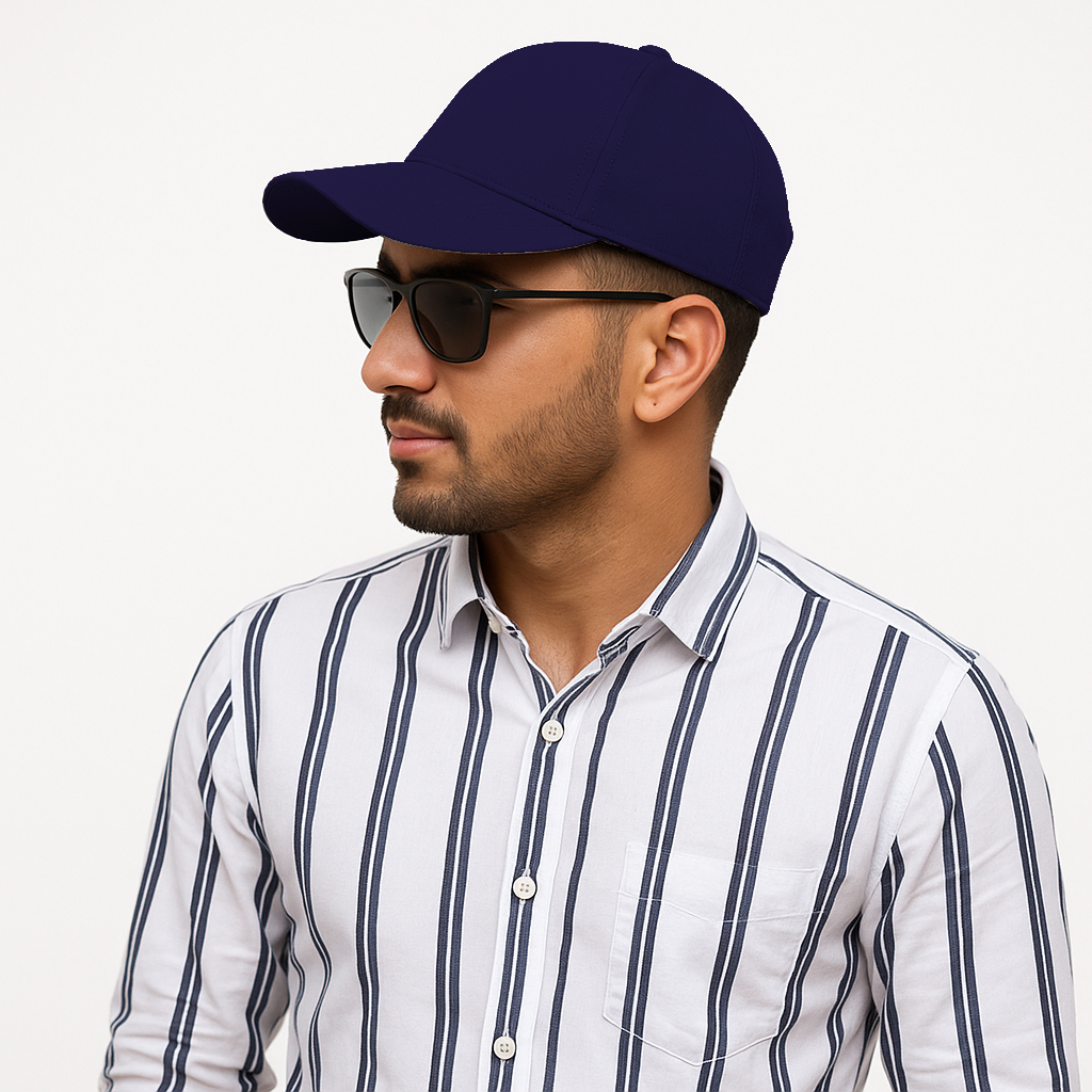 The deep Navy Blue shade adds a rich, modern touch to your outfit — subtle, stylish, and versatile. Its adjustable back strap ensures the perfect fit for all head sizes, so you stay comfortable all day.